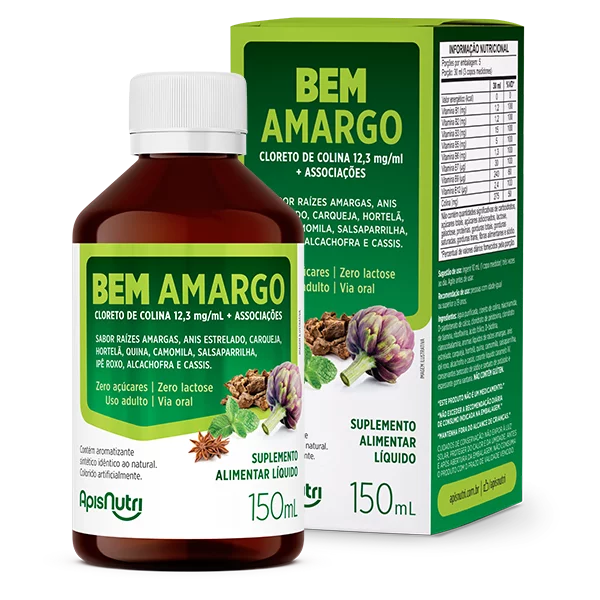 Solução de composição única e diferenciada, reúne raízes amargas, Carqueja, Alcachofra, Anis Estrelado, Hortelã, Quina, Camomila, Salsaparrilha, Ipê Roxo, Cassis e Colina, além das vitaminas B1, B2, B3, B5, B6, B7, B9 e B12.