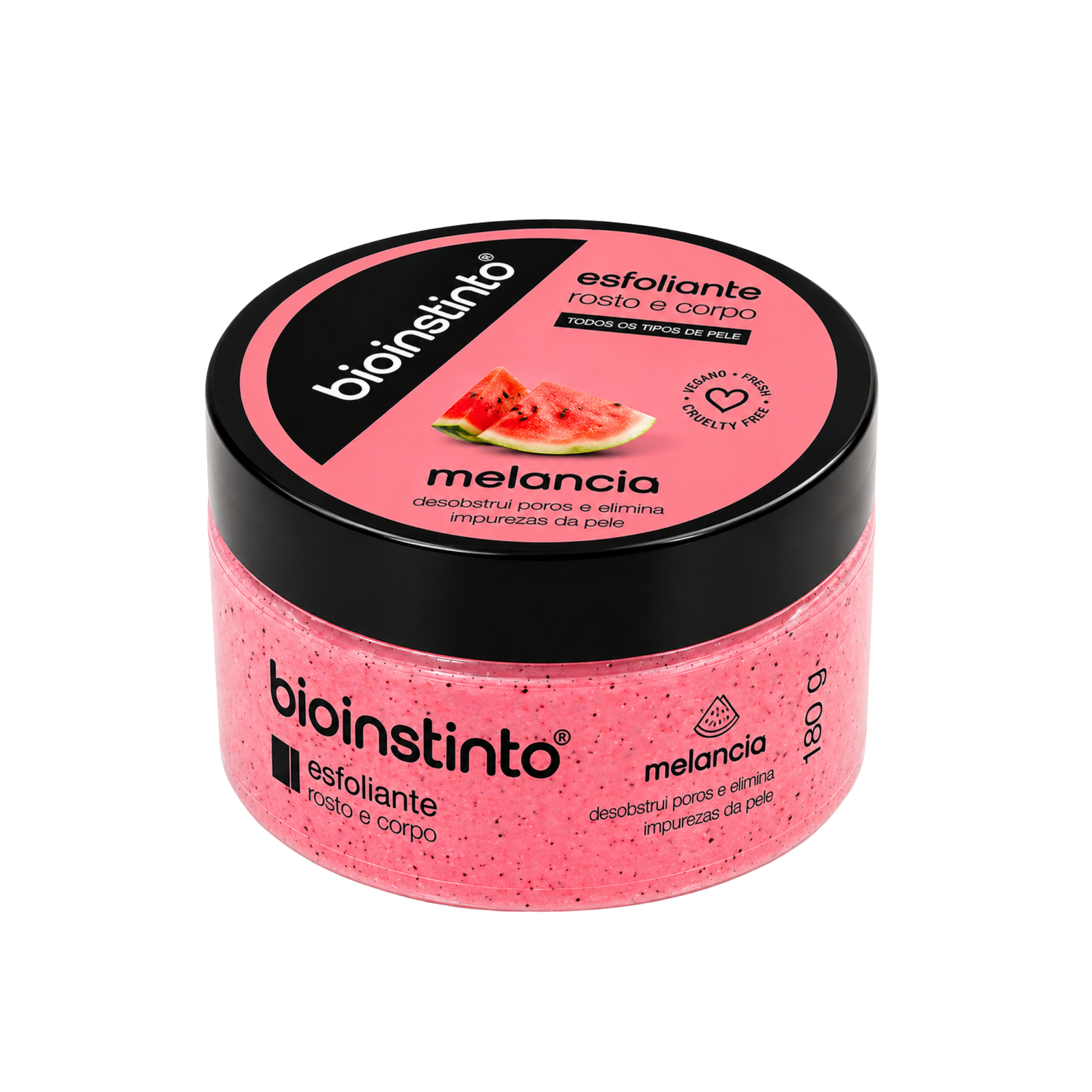 O Esfoliante Rosto e Corpo Melancia Bio Instinto combina a irresistível fragrância e o extrato de melancia, com colágeno, que auxilia na firmeza e elasticidade da pele, proporcionando maciez e toque aveludado. Sua esfoliação suave elimina as impurezas do rosto e do corpo, rosto e do corpo, desobstrui os poros e ajuda a renovar a pele, realçando seu brilho natural.