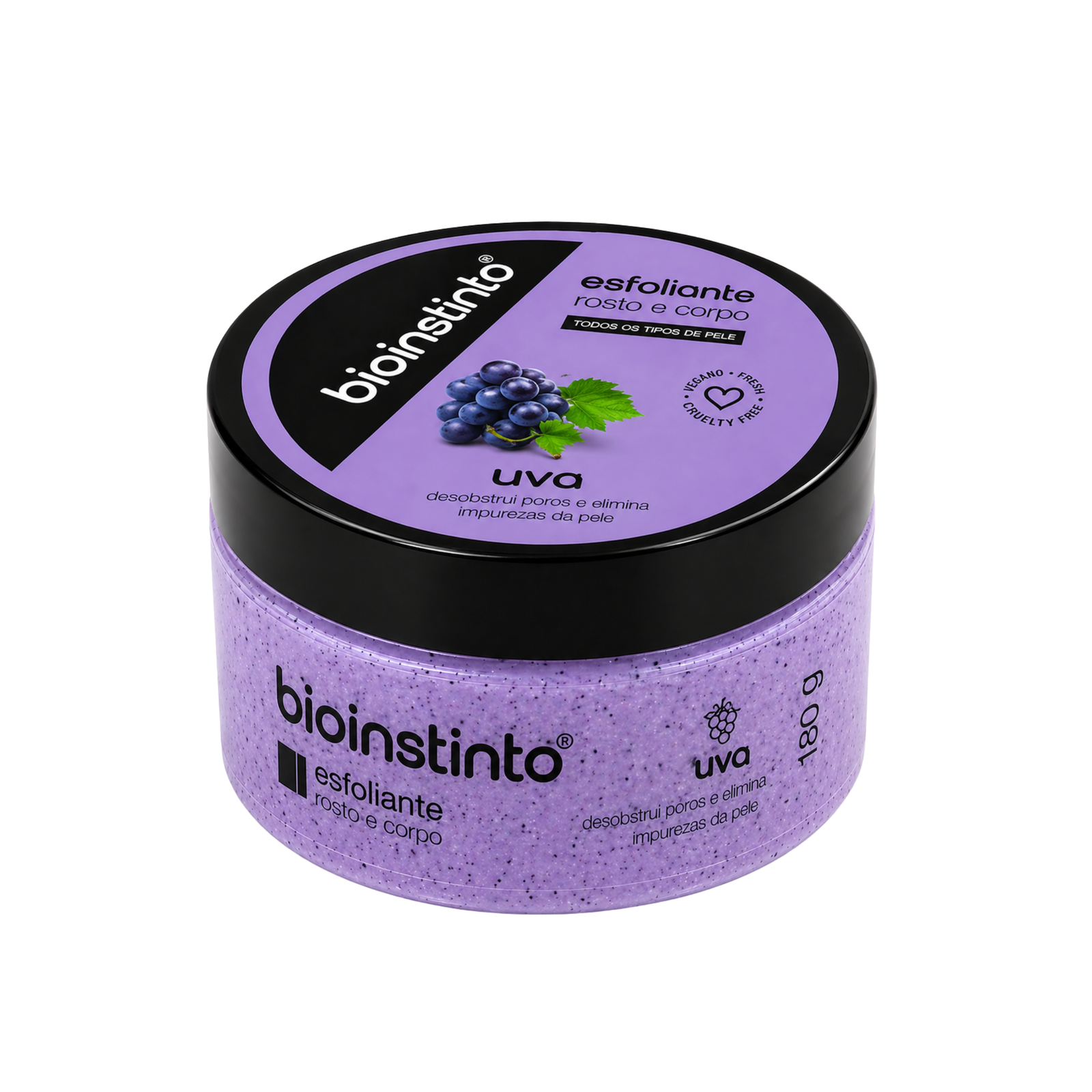 O Esfoliante Rosto e Corpo Uva Bio Instinto combina a Irresistível fragrância e o extrato de uva, com colágeno, que auxilla na firmeza e elasticidade da pele, proporcionando maciez e toque aveludado. Sua esfoliação suave elimina as impurezas do rosto e do corpo, desobstrui os poros e ajuda a renovar a pele, realçando seu brilho natural.