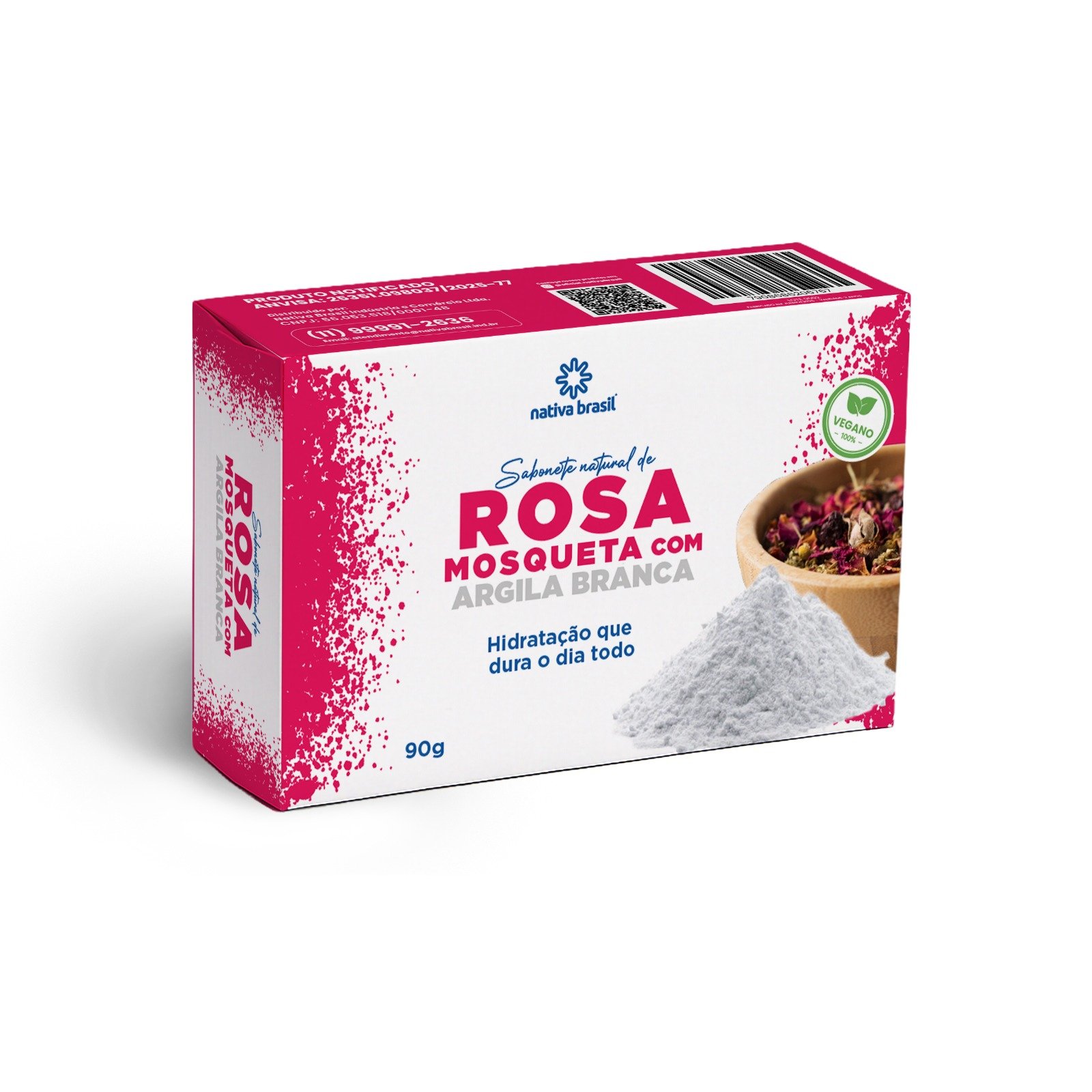 Sabonete em Barra Rosa Mosqueta com Argila Branca 90g - Nativa Brasil