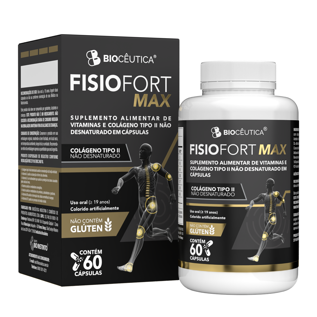 Suplemeto Alimentar de Vitaminas e Colágeno Tipo II Fisiofort Max 60 Caps 40mg - BioCêutica