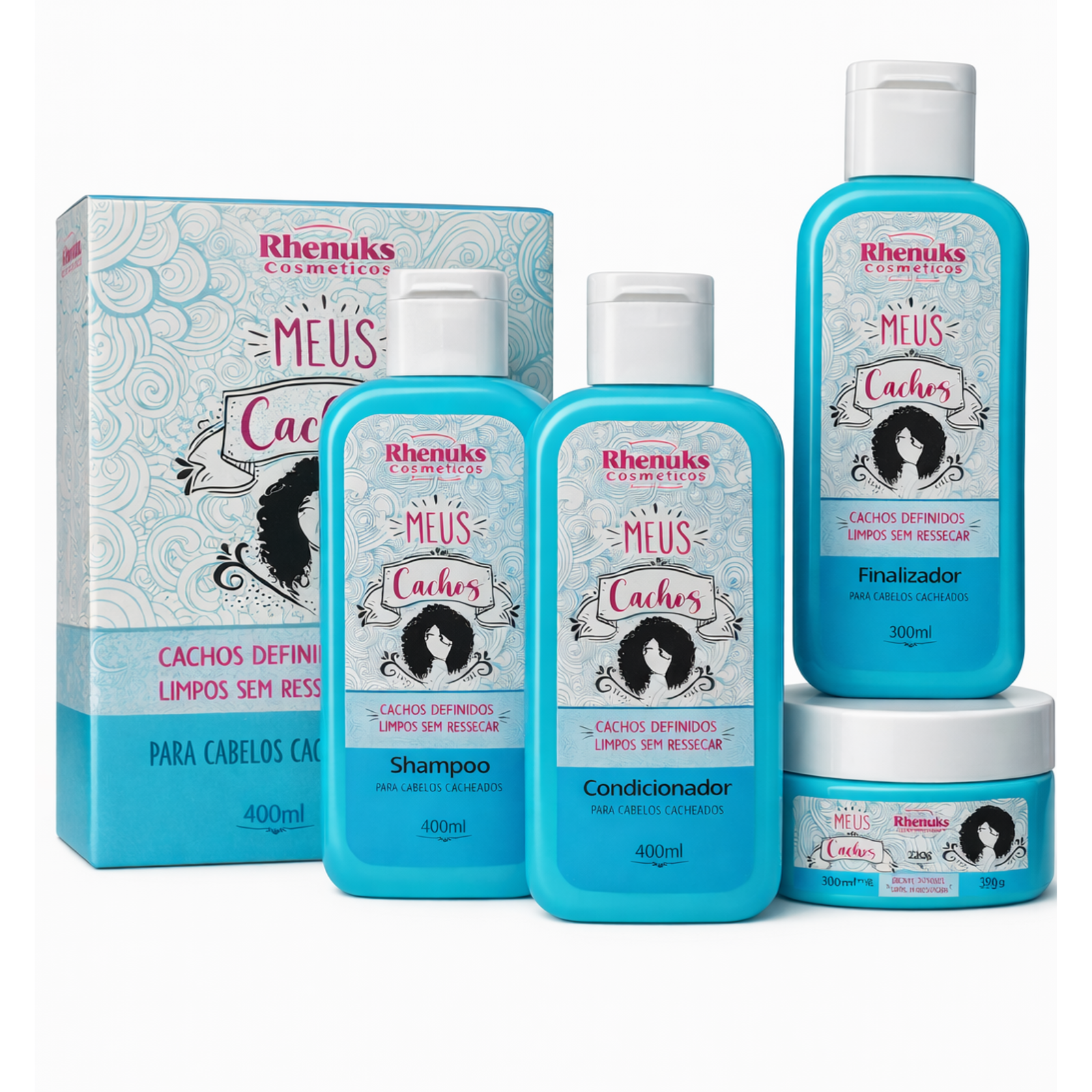 Alcance cachos definidos e impecáveis sem comprometer a hidratação com o Kit Capilar Meus Cachos. Este kit é a chave para cabelos encaracolados que permanecem perfeitamente definidos e limpos, sem o temido ressecamento.