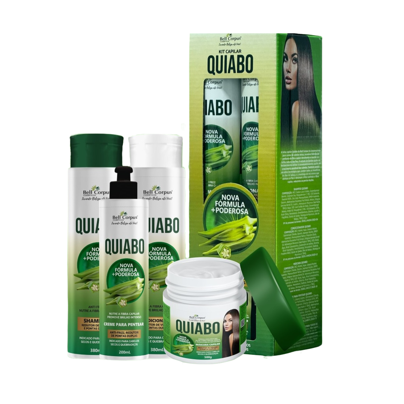 A linha capilar Quiabo da Bell Corpus foi desenvolvida para cuidar de cabelos secos, promove hidratação profunda da fibra capilar devolvendo a maciez e o brilho natural dos fios