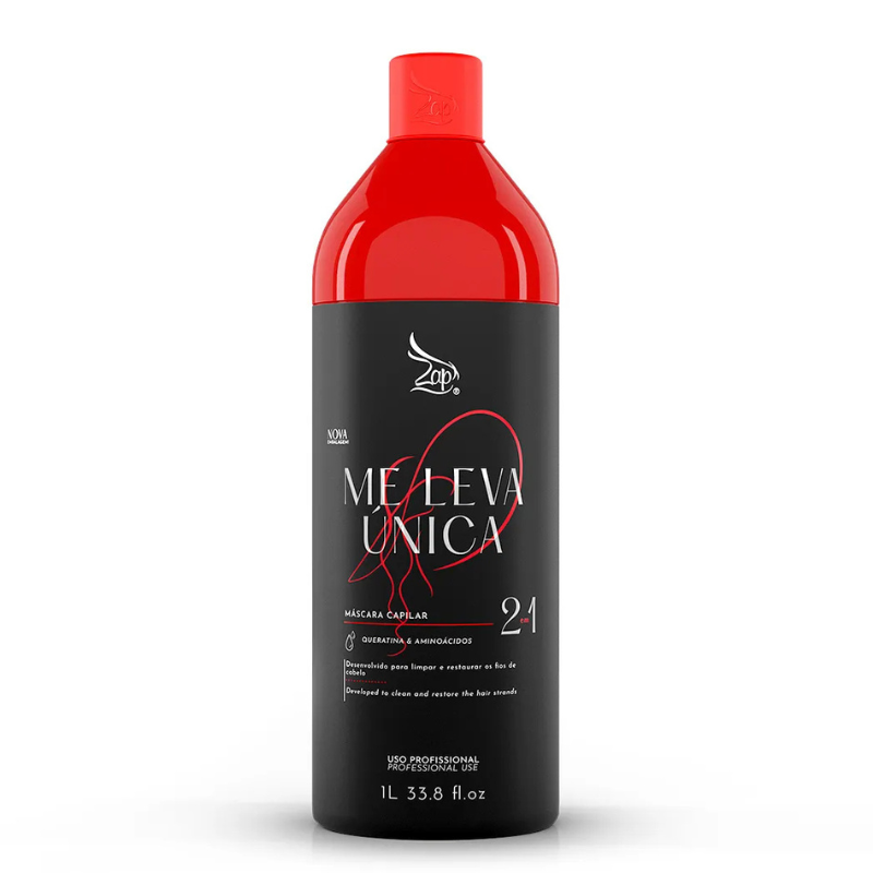 ME LEVA! Agora é 2 em 1, muito mais praticidade com resultados extraordinários! Sua ação promove alinhamentos dos fios, suavidade e equilíbrio das fibras dando vida a seus cabelos. Com uma nova formúla contendo Keratina e um poderoso mix benéfico para o seu cabelo, a Me Leva única trata intensamente, recupera de danos causados por agentes externos e processos químicos, além de disciplinar os fios, deixando-os com um aspecto renovado, macios e com brilho intenso! Contém: 1x Me Leva Única 1L
