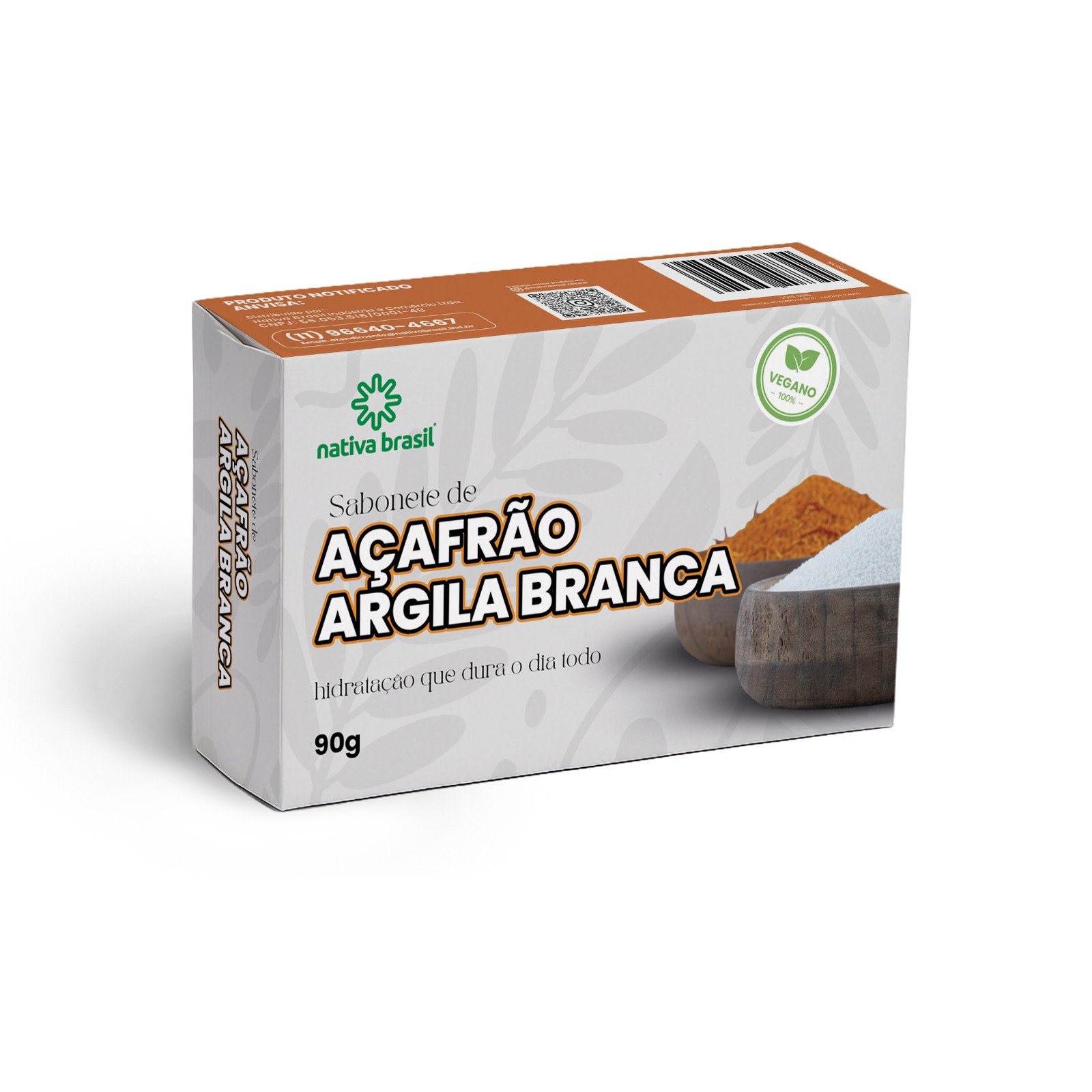Sabonete em Barra Açafrão e Argila Branca 90g - Nativa Brasil
