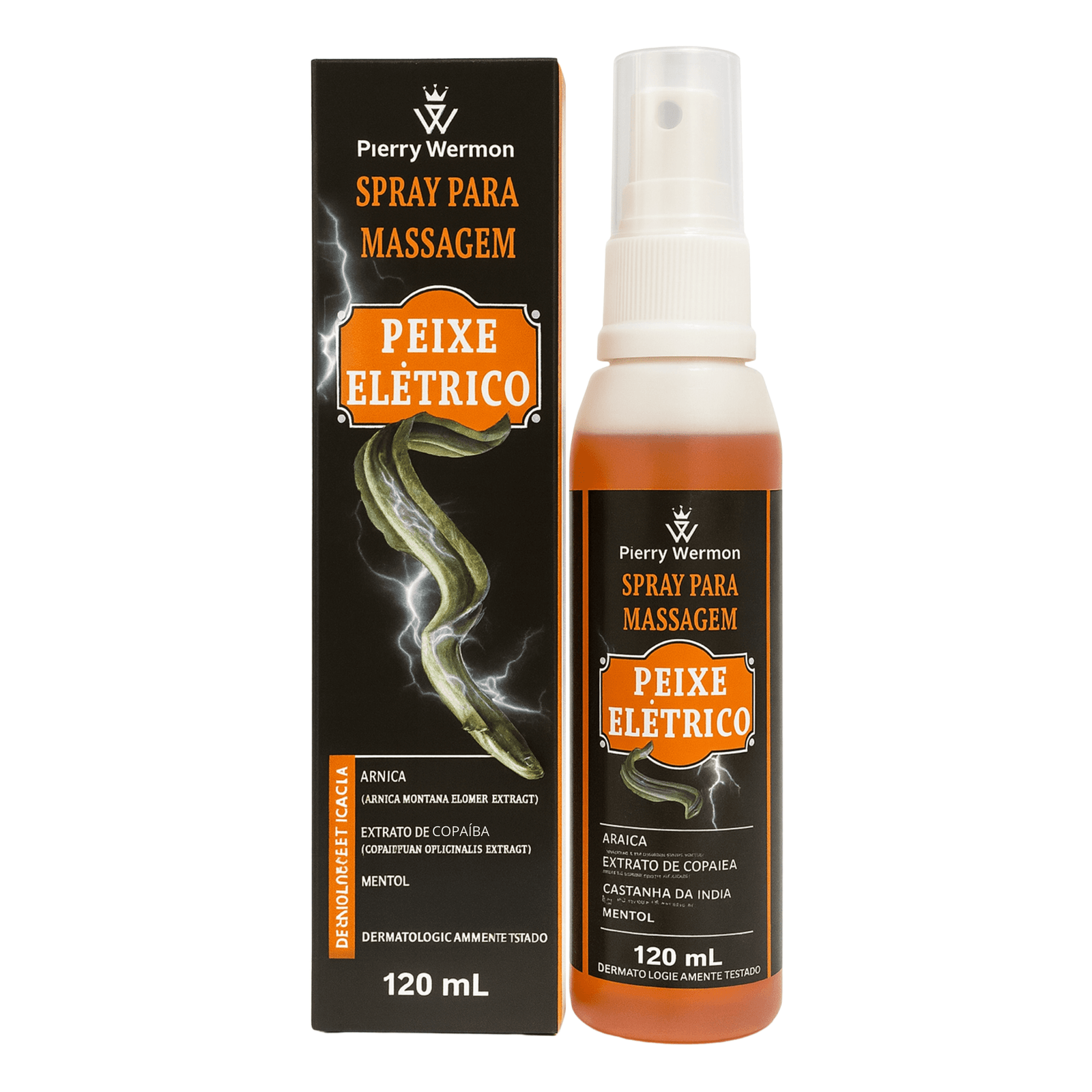 Spray para massagem peixe elétrico foi desenvolvido com ativos de plantas e extratos vegetais enriquecidos com ativos que agem proporcional alívio imediato no cansaço e dores musculares, eliminando o estresse do dia a dia. Assim lhe proporcionando uma agradável sensação de frescura conforto e bem-estar durante e depois da massagem. Indicado para ser utilizado em massagem práticas esportivas.
