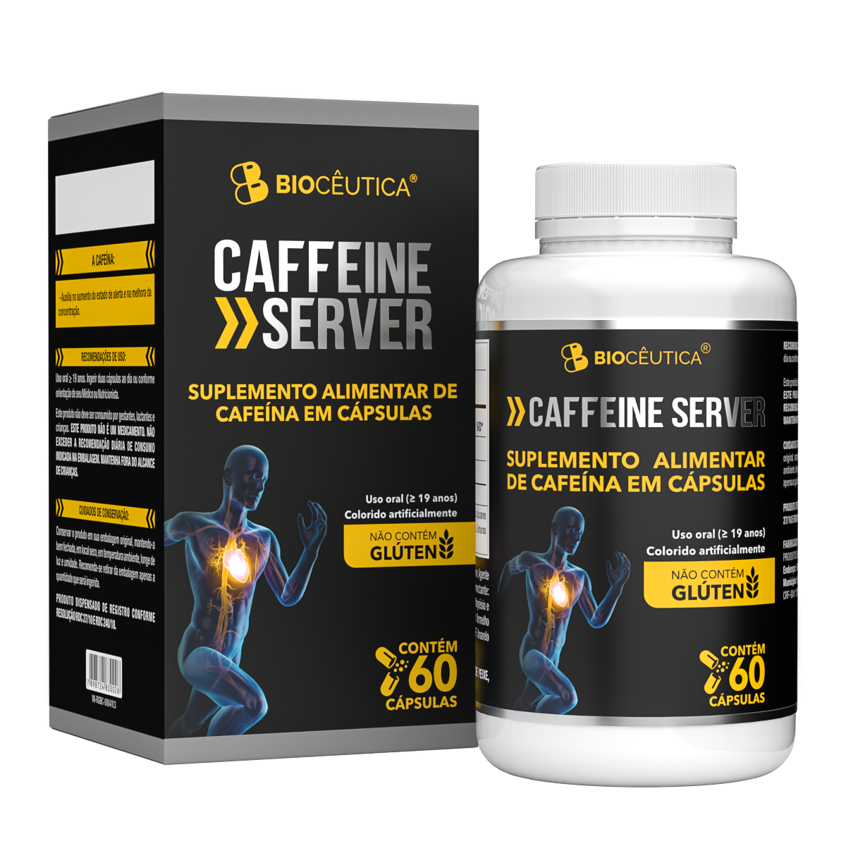 Suplemento Alimentar de Cafeína Caffeine Server 60 Caps 200mg - BioCêutica