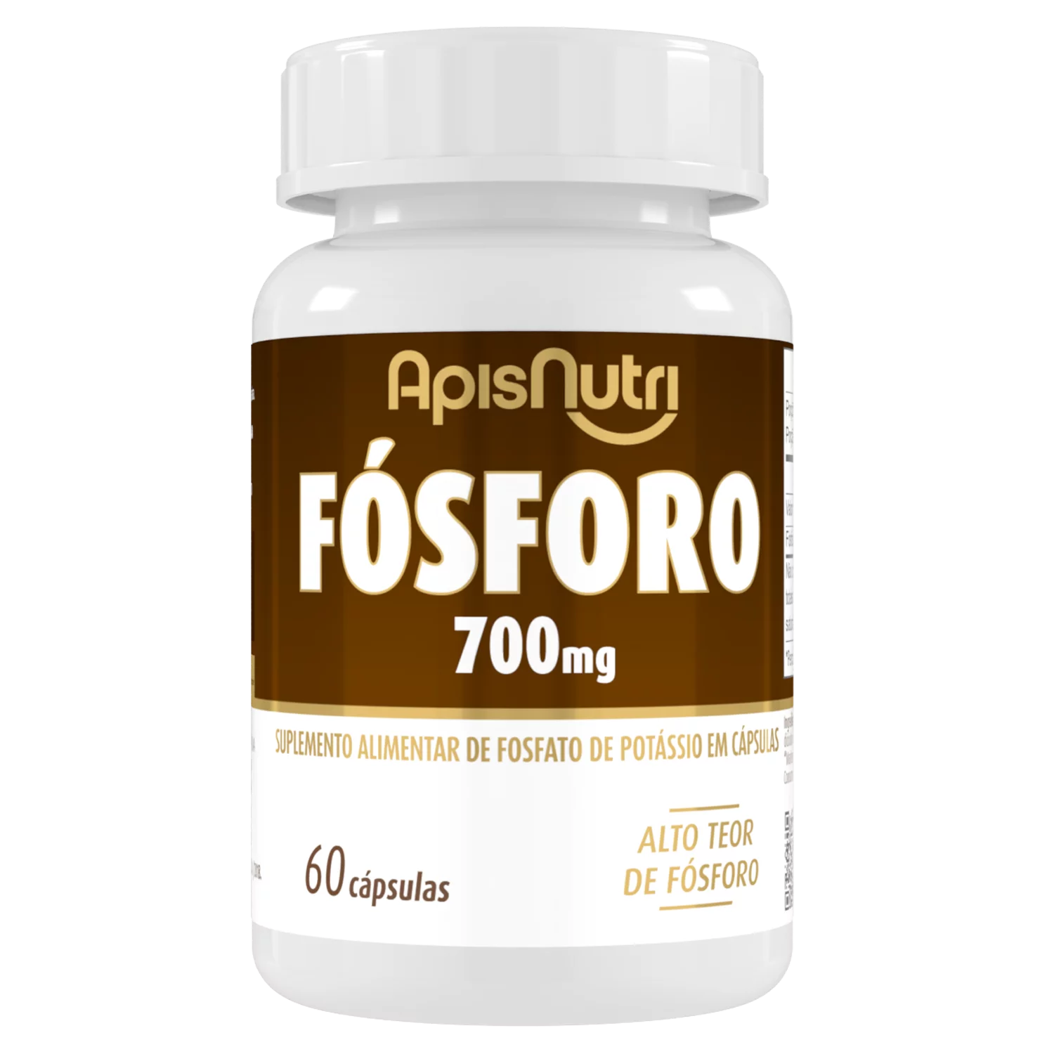 Ligado diretamente com o Cálcio dando forma, suporte e sustentação aos órgãos e músculos, o Fósforo é um elemento vital para o crescimento, desempenho fisiológico e bioquímico das células. O Fósforo ApisNutri, possui alto teor do mineral e fornece 100% do valor diário recomendado. Ingerir 5 (cinco) cápsulas ao dia. Recomendação de uso: 19 (dezenove) anos ou acima. Ingredientes Fosfato de potássio monobásico, lubrificante talco. Antiumectante: dióxido de silício. Cápsula: gelatina e água deionizada.